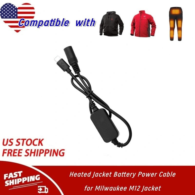 12V Heated Jacket Battery Step up Power Cable for Milwaukee M12 Jacket