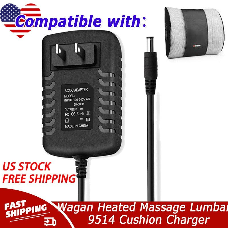 12V Power Supply Adaptor for Wagan Heated Massage Lumbar, 9514 Cushion