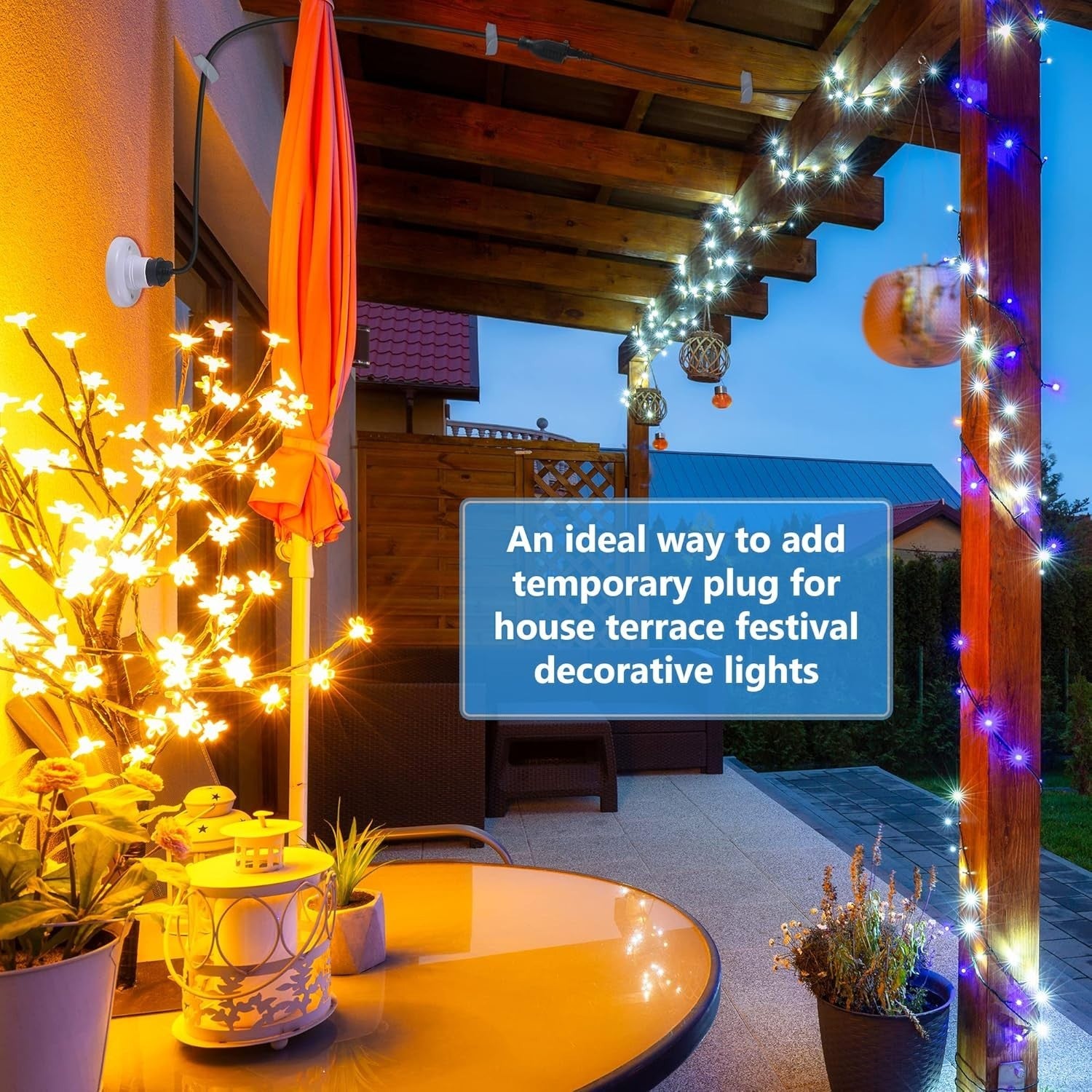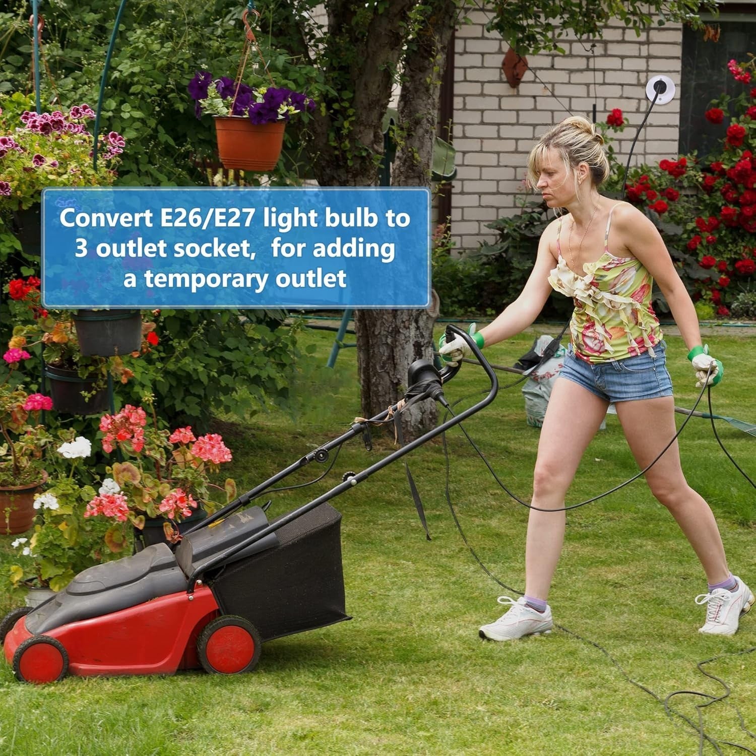 (2 Pcs) 3 Outlet Adapter For E26/E27 Bulb for Indoor Outdoor Porch Garage Patio