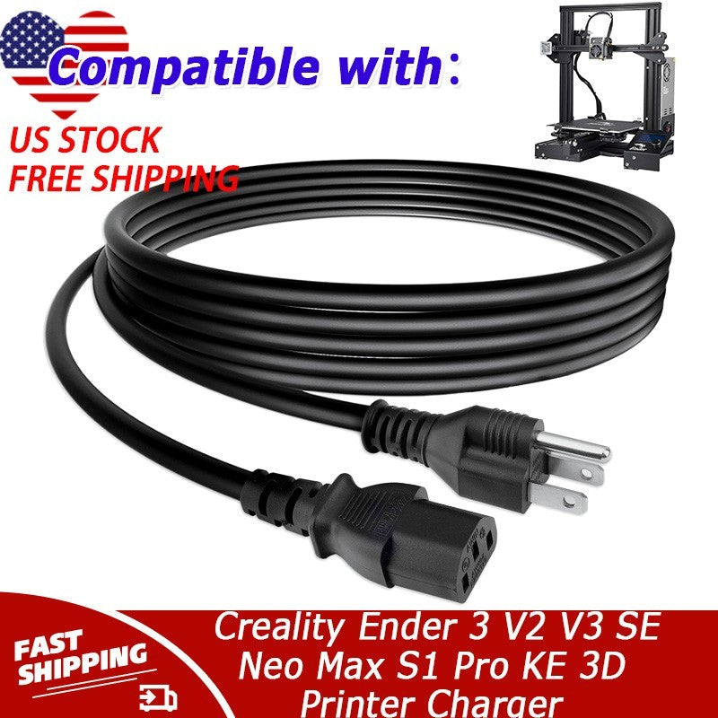 3 Prong AC Power Cord For Creality Ender 3 V2 V3 SE Neo Max S1 Pro KE 3D Printer