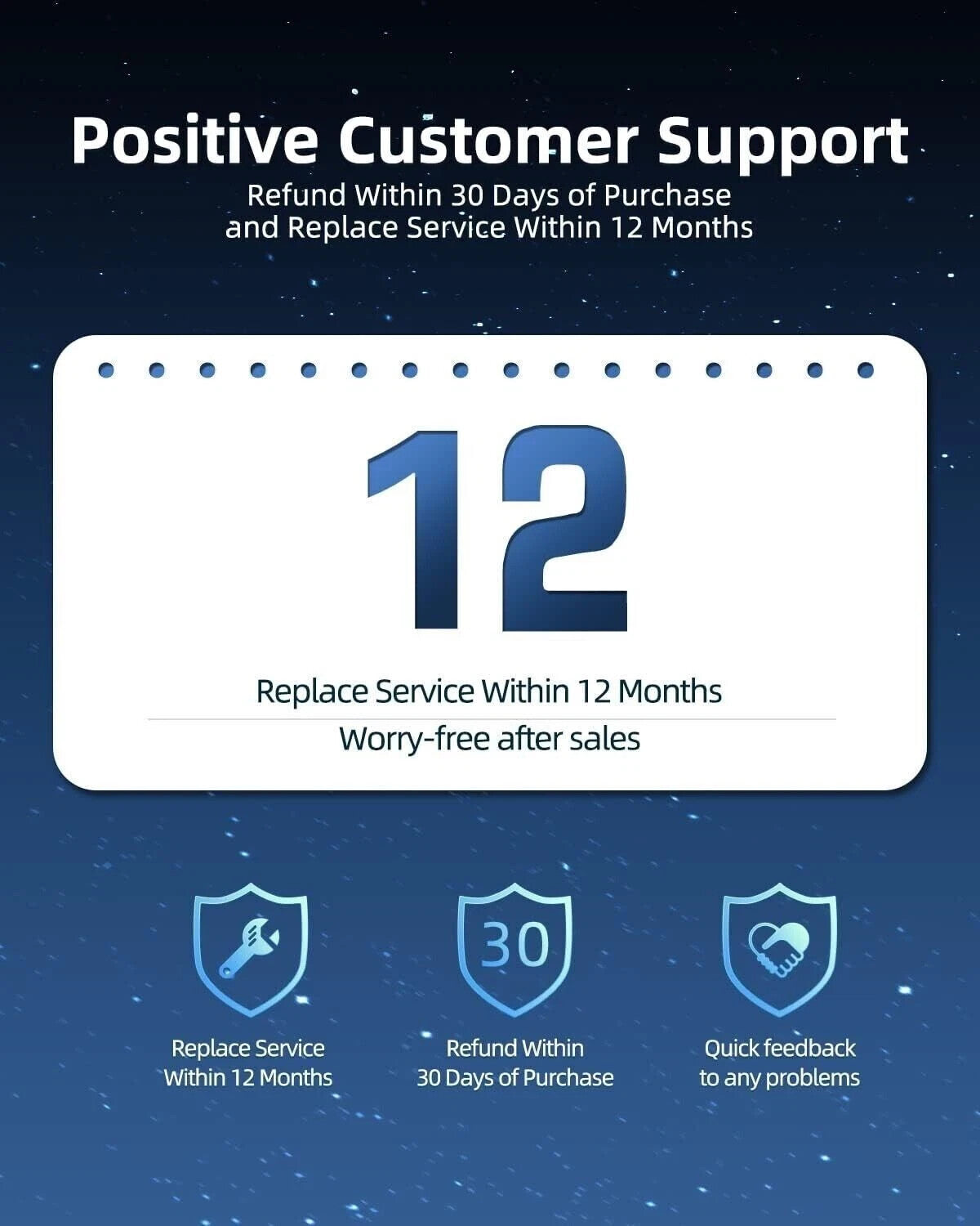 We guarantee against any defective products. A replacement will be provided for any defective or misrepresented products for the duration ofthe 3 months. A full refund can only be issued during the first 30 days upon receipt of the product.