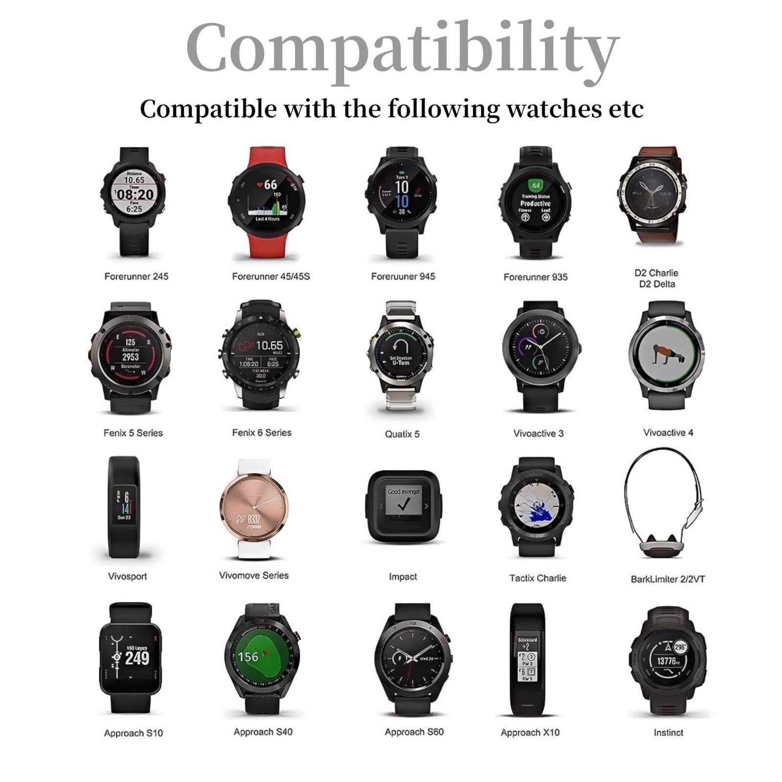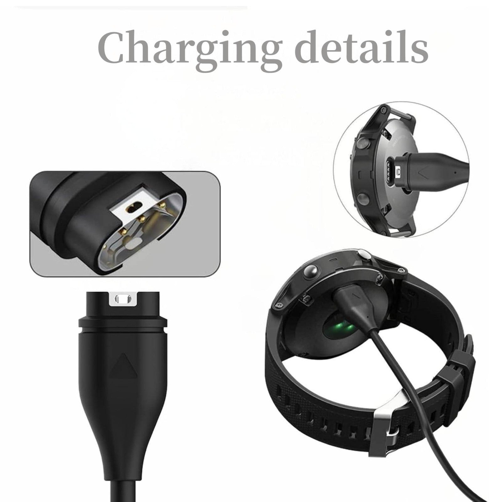 Replacement Watch Charger USB Charging Cable Engineered for performance, safety and reliability power for your essential devices. CompatibilityUSB Charging Cable Compatible With Garmin WatchCompatible With Garmin Vivoactive 6 5 4Compatible Forerunner 970 965 265 255 165 55Compatible With Fenix 8 7 6 5 ECompatible With Instinct 3 2Compatible With Venu 3s 3 2 X1Compatible With Approach S70 S62 S50Compatible With Tactix 8 7 Pro etc.(Please confirm compatibility before purchase.)SpecificsInput Voltage: AC100-240V (Worldwide AC Input)Input Frequency: 50-60HzConnector Size: As shown in picturesCable Length: 3.3ftColor: Black Why Choose?Quality Control: All products have been rigorously tested.Safety: Short circuit, over current, over voltage, and over temperature protection.Compact and Efficient: Portability and low energy consumption.Package List1*AC/DC Charger Plug 1*USB Charging Cable After-sales service instructionsPlease contact us first if you have any after-sales problems, it will speed up the return process.We will certainly provide satisfactory after-sales service! Thank you for your cooperation. Kindly Note Compatibility Notice: Before using this charger or power adapter, please consult a qualified professional or refer to your device's user manual to confirm compatibility. Device models and specifications may vary by version, region, or country, so please verify before purchase. Replacement Product: This item is a compatible replacement. However, it has been strictly tested to ensure reliable performance and compatible with the models listed in the title and description. Trademark Statement: All product names, trademarks, or registered trademarks mentioned are the property of their respective owners. They are used only for the purpose of indicating compatibility. The respective manufacturers do not necessarily endorse the use of these replacement products. Trusted Power Accessories for Everyday Devices.
