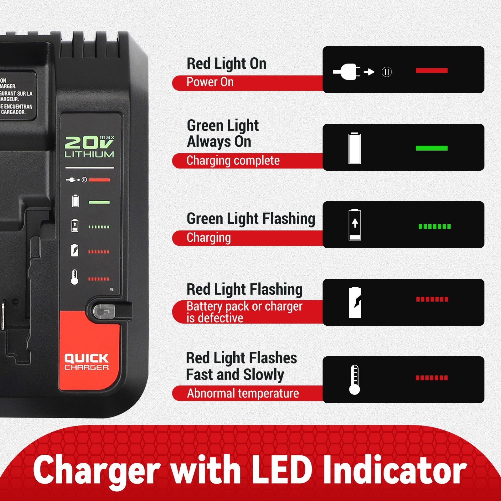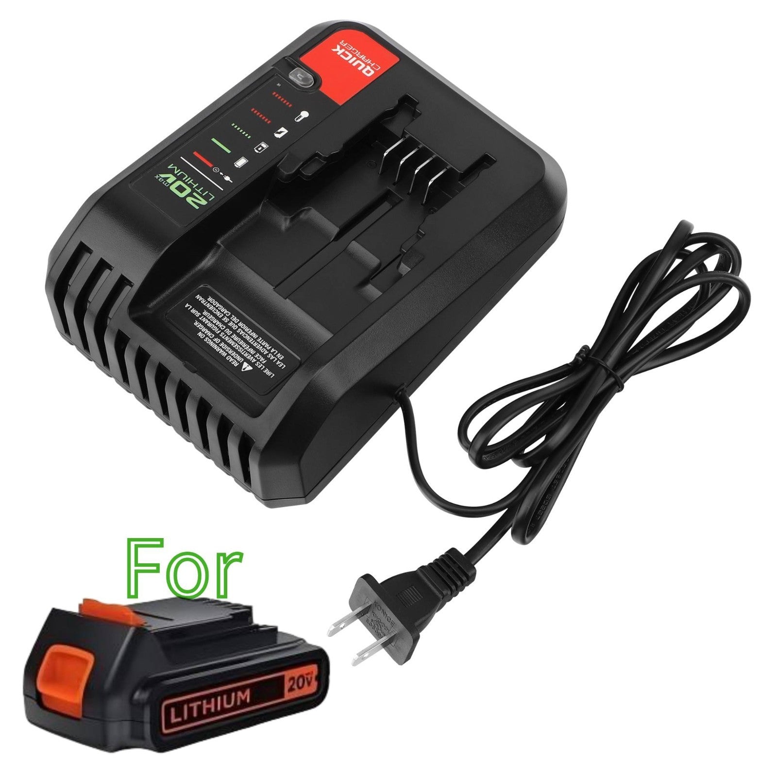 Replacement 20V MAX Lithium Battery Charger Engineered for performance, safety and reliability power for your essential devices. CompatibilityCompatible with Porter-Cable 20V MAX Lithium Battery Charger PCC691L PCC692L PCC699L PCCB122C2 and Compatible with Black & Decker 20V MAX Lithium Battery Charger LCS1620B BDCAC202B ( Incompatible with Craftsman V20 20V Battery ).Compatible with all Black and Decker 20-Volt MAX Lithium-Ion Cordless Tool Battery Packs LBXR20, LBXR2020, LBXR2020-OPE, LBX4020, LB2X4020, LB2X4020-OPE, LB20, and LBX20. Compatible with all Porter-Cable 20-Volt MAX Lithium-Ion Cordless Tool Battery Packs PCC680L, PCC681L, PCC682L, PCC685L, PCC685LP, PCC699L, PCC680, and PCC685. (Please confirm compatibility before purchase.)