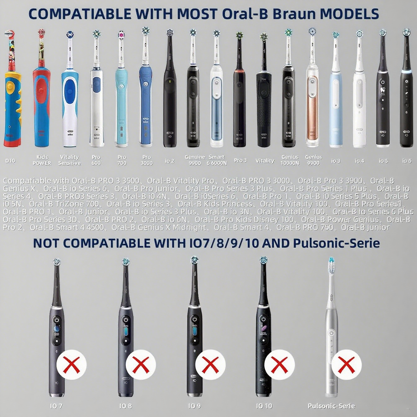 ๐งด Compatible Devices: Oral-B/Braun Most Models (Excluding iO 7/8/9/10 and Pulsonic Series)